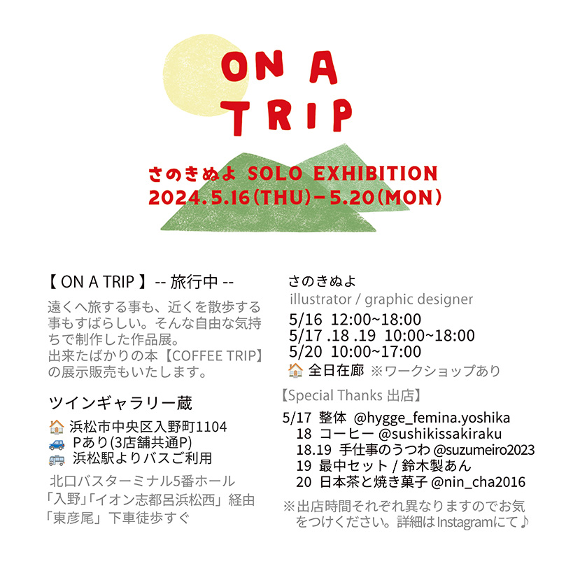 - 佐野絹代 個展【ON A TRIP】ー旅行中ー